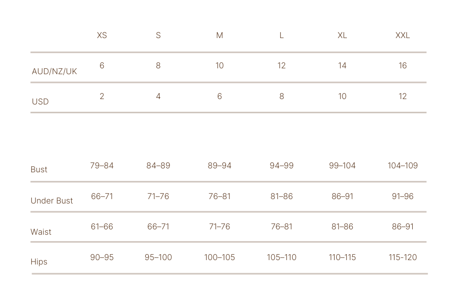 To ensure the perfect fit, explore our detailed Size Guide and refer to the fit notes within each product description. All swimwear is listed in Australian sizing unless otherwise specified.If you need further assistance, our customer service team is here to help: info@tyneswim.com.au